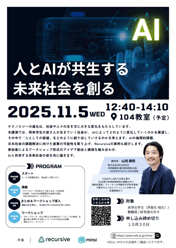 ワークショップ「人とAIが共生する未来社会を創る」(東京外国語大学)